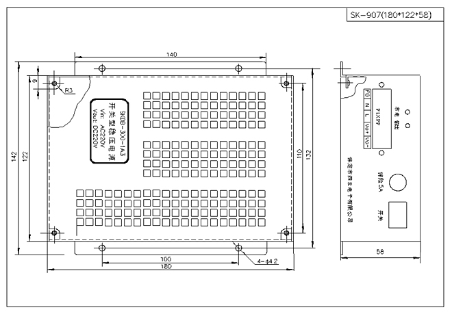3. 本電源輸入端內(nèi)接5A保險(xiǎn),開關(guān)啟動(dòng)。